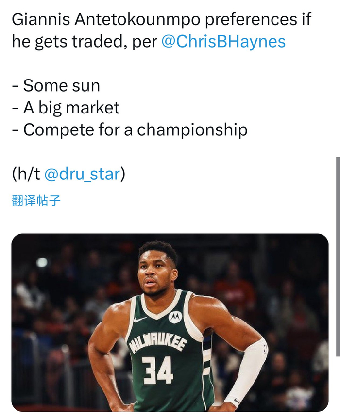 Bet9九州-名记曝字母哥交易偏好:阳光、大市场、争冠队